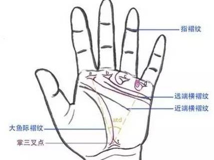 掌纹分三大部分,即天纹、人纹、地纹。掌纹分别对应的是:感情线、智慧线和生命线。三大主线占据三大掌中区域,每个掌纹区域的穿插线和支线分别有:婚姻线、事业线、健康线、子星线、阴功线、成功线、太阳线、金星带和暴发线等等。