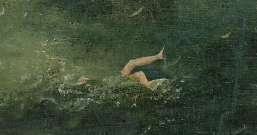整幅画画质清晰,色彩均衡,人物也刻画的栩栩如生,非常具有观赏性。但假如你点开大图,仔细观赏这幅画时会发现:在这幅画的右下角,那首轮船的前方,有一位落水者。
